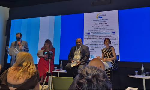 On 30 June 2025, the ICBSS Director General, Mr. Georgios Mitrakos, participated as speaker at the Conference "The Gulf New Geopolitical Balances - Italian and EU Strategies in the Wider Mediterranean", held at the Office of the European Parliament in Italy.