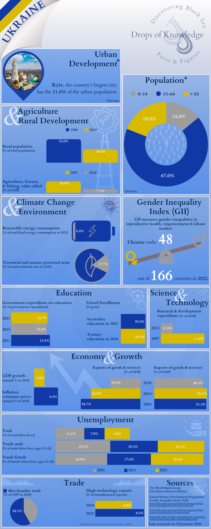 - Urban Development: 11% of the urban population lives in Kyiv, the country’s largest city (2024).