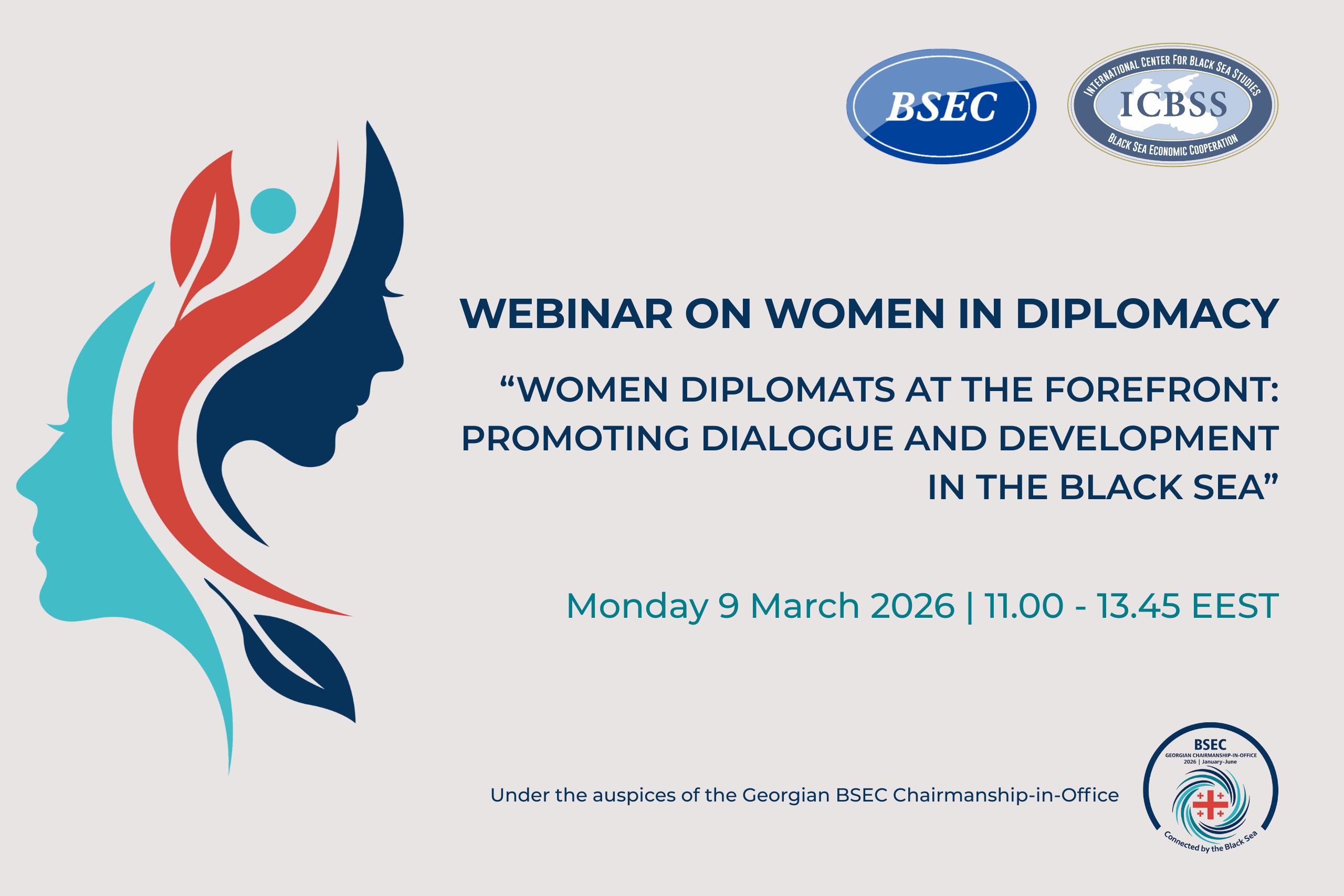 On the occasion of International Women’s Day (8 March), the Permanent International Secretariat of the Organization of the Black Sea Economic Cooperation (BSEC PERMIS), in cooperation with the International Centre for Black Sea Studies (ICBSS), and under the auspices of the Georgian BSEC Chairmanship-in-Office, will organise the Webinar “Women Diplomats at the Forefront: Promoting Dialogue and Development in the Black Sea.”