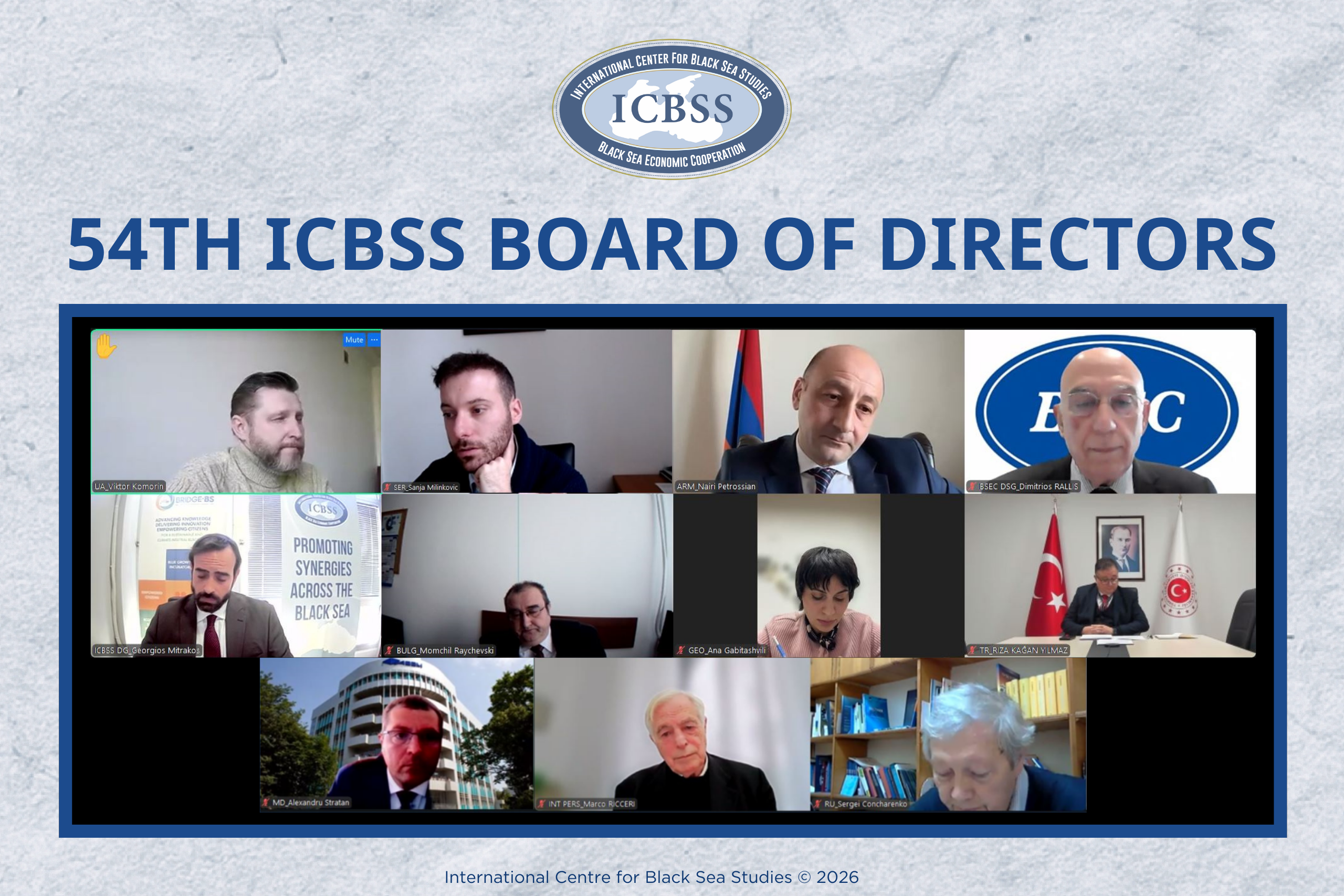 The 54th Meeting of the Board of Directors of the ICBSS was held online, on Tuesday 13 January 2026, under the Chairmanship of Mr. Nairi Petrossian, Permanent Representative of the Republic of Armenia to the BSEC Organization.